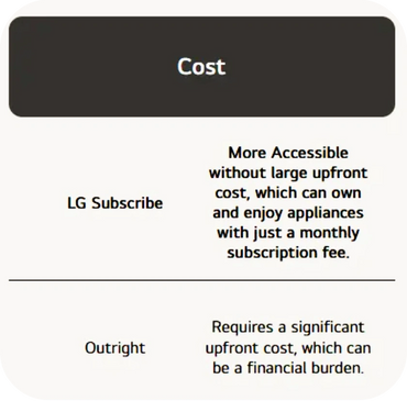 LG Subscribe is a household appliance renting service that allows you to complete your home in a cost-effective way. A wide range of appliances from refrigerators to TVs are available to rent, making your place truly feel like a home.